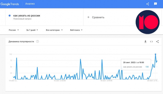 Details: Google searches for the phrase "How to leave Russia" reached a peak on 20 September.