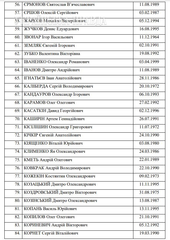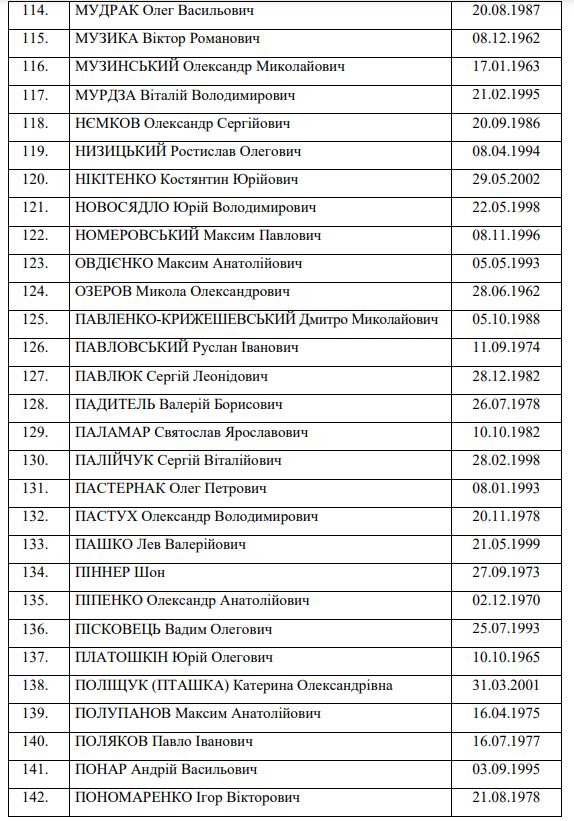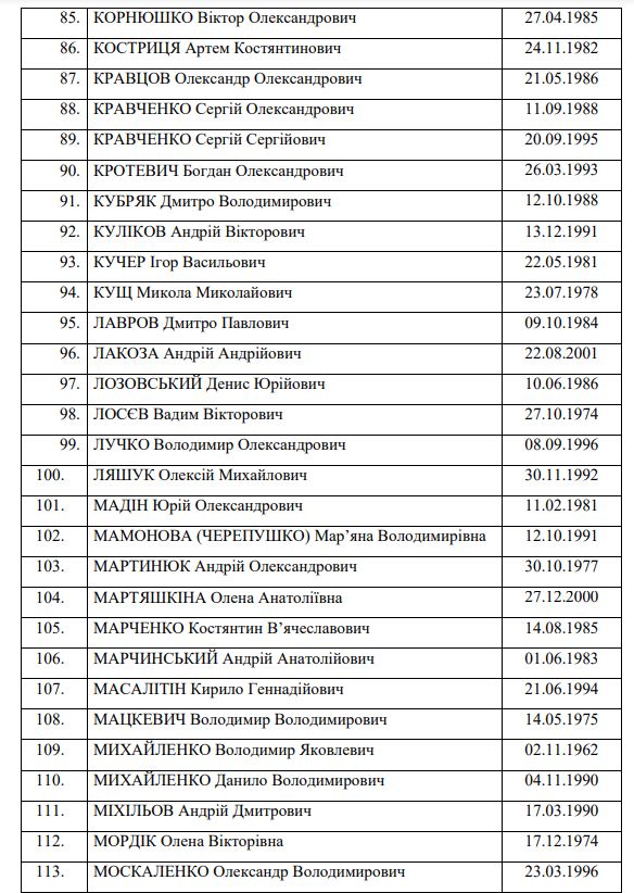 Details: Border guards, policemen, marines, national guardsmen, members of the territorial defence, customs officers, and civilians are also among those released. In particular, Denys Prokopenko, aka Radis, Serhii Volynskyi, aka Volyna, Svyatoslav Palamar, Denys Shleha and Oleh Khomenko – unit leaders of the defence of Azovstal [steel plant in Mariupol – ed.] - are already safe.