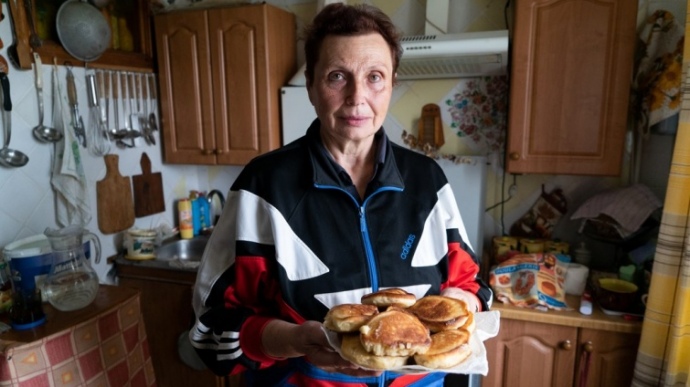 The woman who greeted the Ukrainian soldiers with pancakes during the liberation of the city heard Ukrainian language from the soldiers for the first time in a while.