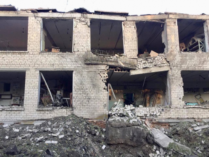 The occupiers hit a school in the village of Vozdvyzhivka with two rockets at night. The educational institution has been almost entirely destroyed. Another rocket hit a local park. Private houses nearby were also damaged.
