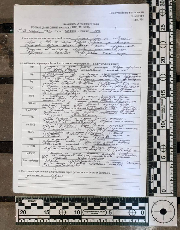 Quote: "The material evidence found includes: the Russian forces’ secret combat order to invade Ukraine’s territory, a topographic map of Kharkiv Oblast with the route, lists of personnel serving in the tank brigades of Russia’s Armed Forces, and documents from units of the Military Civilian Administration of Izium district, educational and medical establishments, entrepreneurs, and utility companies."