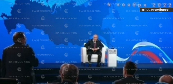 Details: Russians celebrate National Unity Day on 4 November. Putin made this statement about Ukraine at an event to mark the occasion, in front of an "updated" map of Russia which includes the annexed Ukrainian lands as Russian territory.