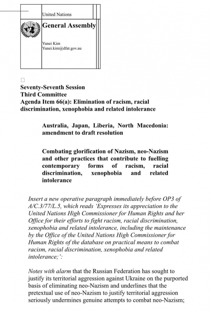But the draft resolution has been twisted and manipulated by the Russians. That’s why Ukraine and the US have always voted No. Russian propaganda would then falsely claim that ‘Ukraine and the US do not condemn Nazism.’