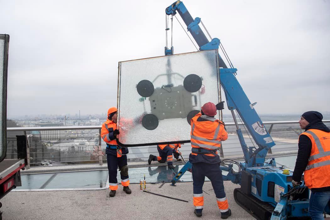 Quote: "We are restoring our pedestrian-cycling bridge! The glass for the railing and the floor glass have been produced and delivered. And experts are already installing new glass elements to replace those damaged by the explosion of the Russian rocket. Out of 16 elements of the floor glass, 14 have already been replaced. The railing lighting is also being repaired."