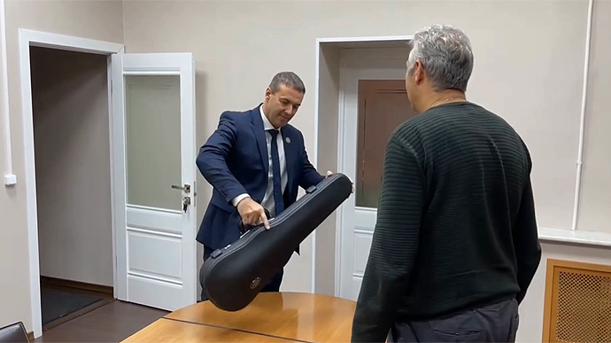 A video showing the transfer of this so-called briefcase appeared on Russian Telegram channels; there was a "blood-stained" sledgehammer in a violin case.