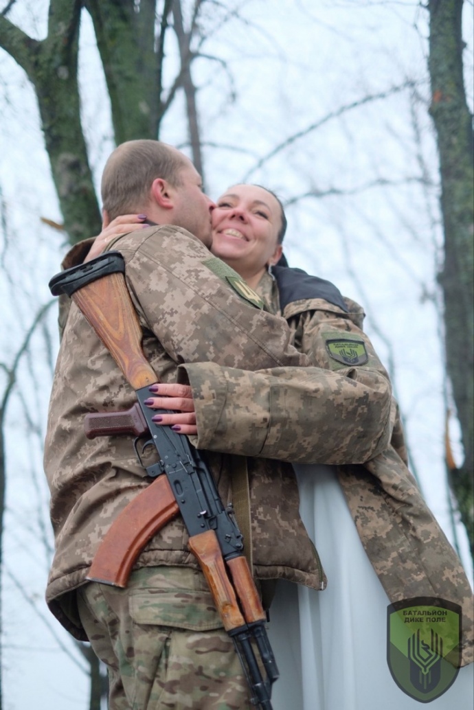 A new family was created in the Dyke Pole ("Wild Field") Separate Special Forces Battalion when Volodymyr, a soldier with the call sign "Metelyk" ("Butterfly"), got married right on the front line.