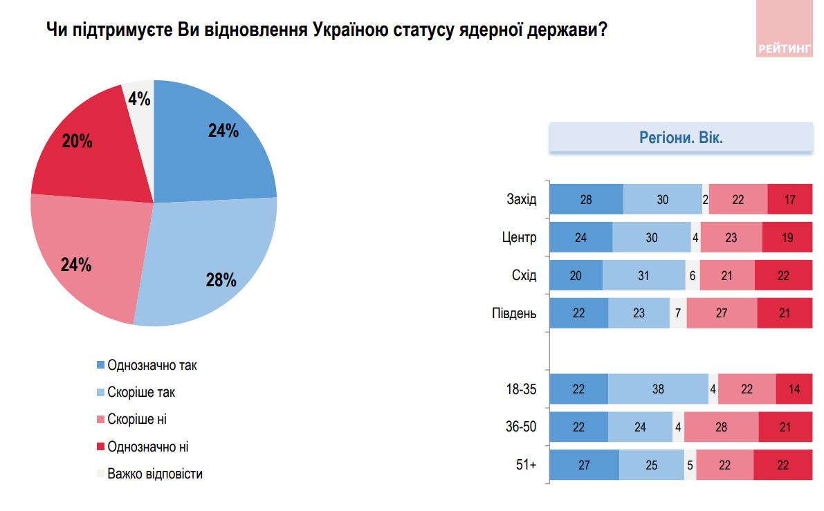 The survey results indicate that the number of those who support restoration of Ukraine's status of a nuclear state has increased (from 47% in 2019 to 53% in 2022).