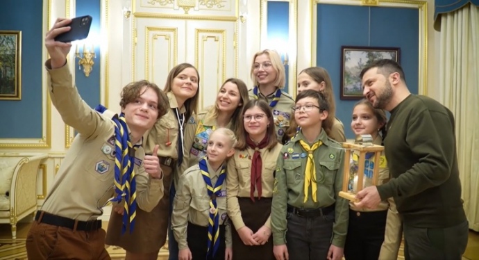 Ukrainian plastuny [the members of the Plast National Scout Organisation of Ukraine, the largest Scouting organisation in Ukraine -ed.] brought the Peace Light of Bethlehem to President Volodymyr Zelenskyy.