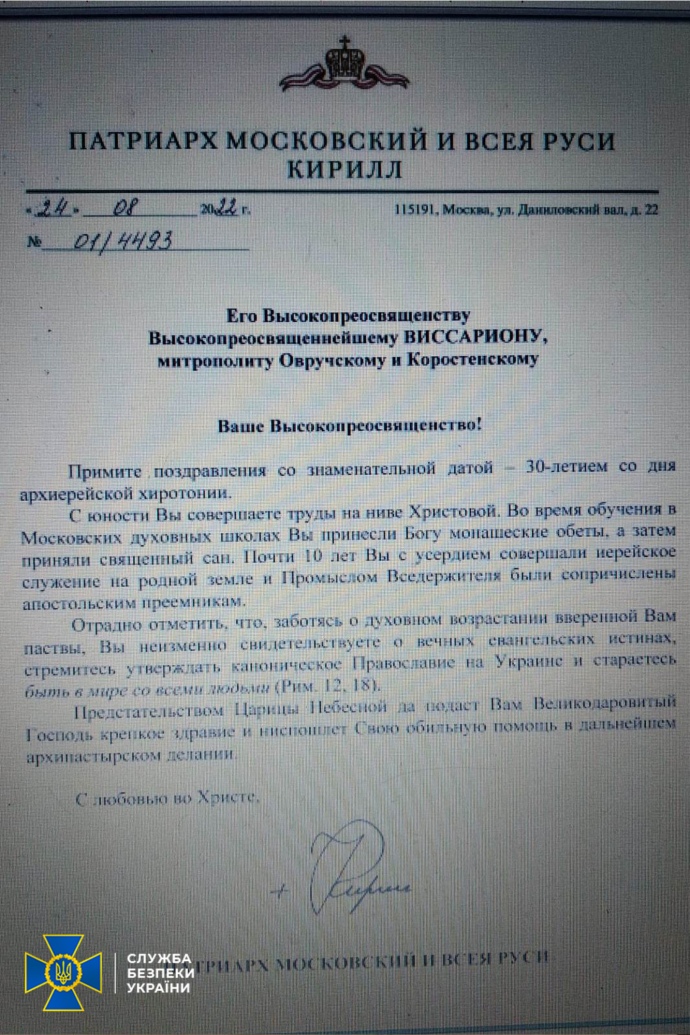 Details: Law enforcement officers say that the items found on premises of the dioceses include Russian passports, St George's ribbons, symbols of the banned party Opposition Platform - For Life, and manuals from Patriarch Kirill, Head of the Russian Orthodox Church, on how hostile propaganda can be spread through parishioners.