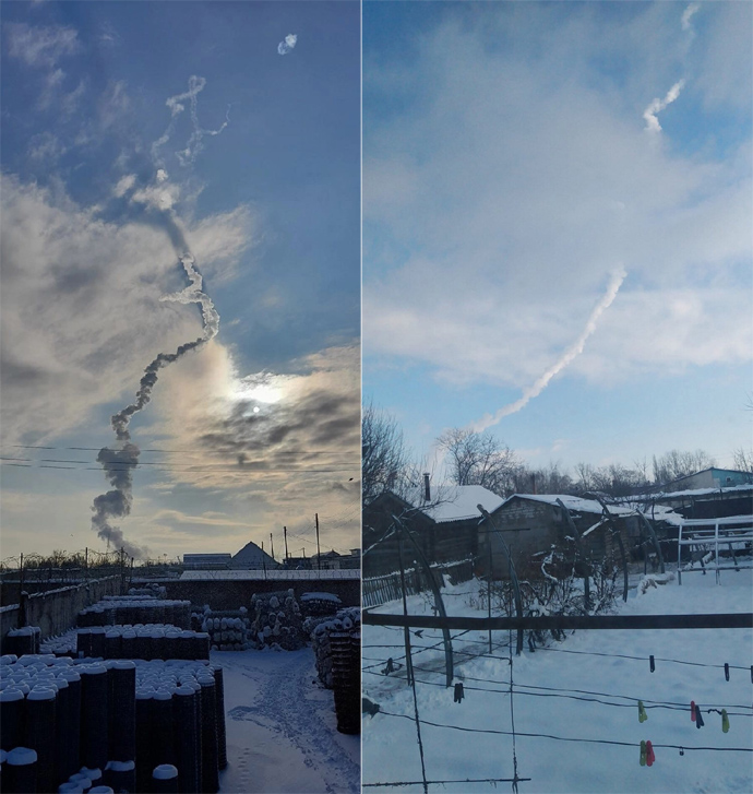Russian channels in Telegram and VK published photos of anti-aircraft missile trails in the sky, and users reported that they heard explosions.