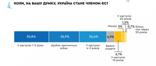 The largest share of respondents – 30.8% – believe that Ukraine can become a member of the EU even in the next year or two.