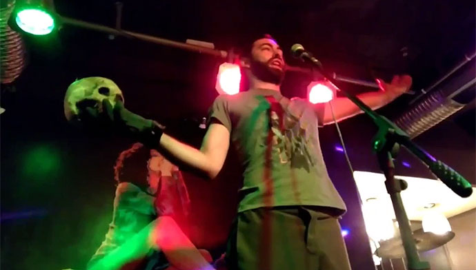 Mangushev gained infamy after a video appeared online in August 2022. In this video, Mangushev performed on the scene holding allegedly the skull of a Ukrainian soldier who died during the defence of Azovstal steelworks in Mariupol.