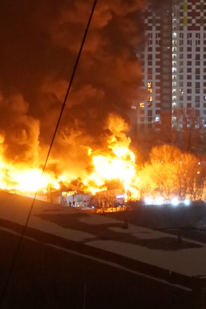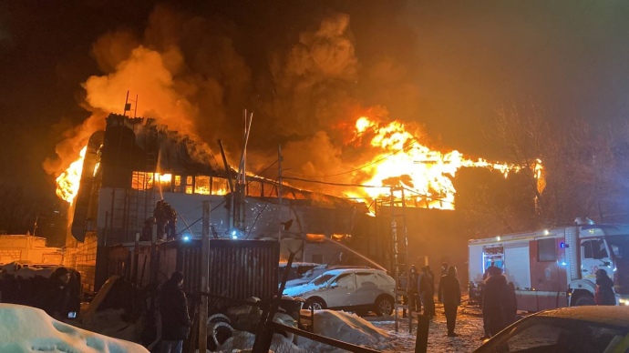 According to RIA Novosti, the fire was contained to an area of 1,500 square metres. Extinguishing is made complicated by the fact that there are tyres and oils in the building.