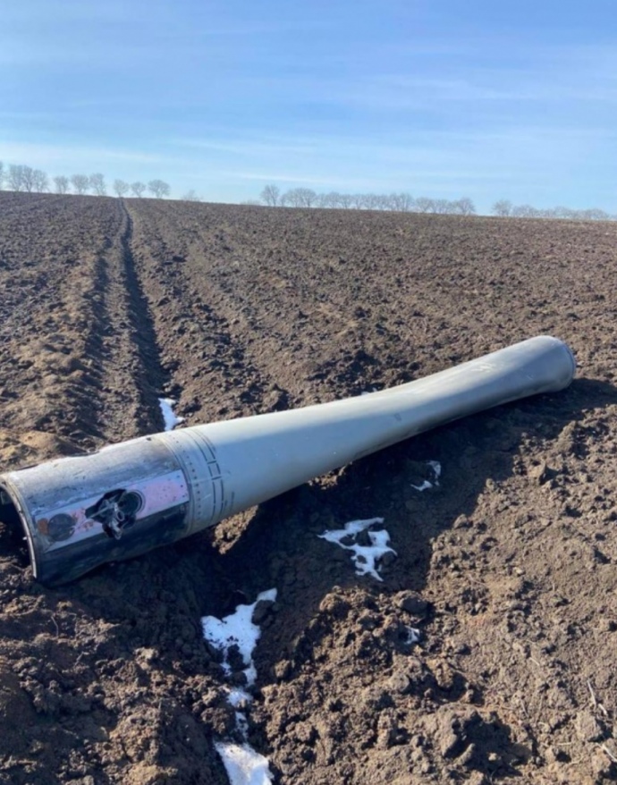 Quote from the Ministry: "The border patrol police have discovered a fragment of a missile launched as a result of Russian air attacks on Ukraine near the sector of the Larga (Briceni district) border police."