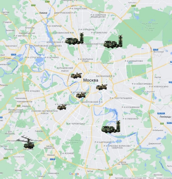 Four S-400 air defence systems are deployed in the Timiryazevsky District in Moscow's north; all launchers are operational. A 92N6E multifunctional radar is also deployed at the site, detecting and tracking air targets.