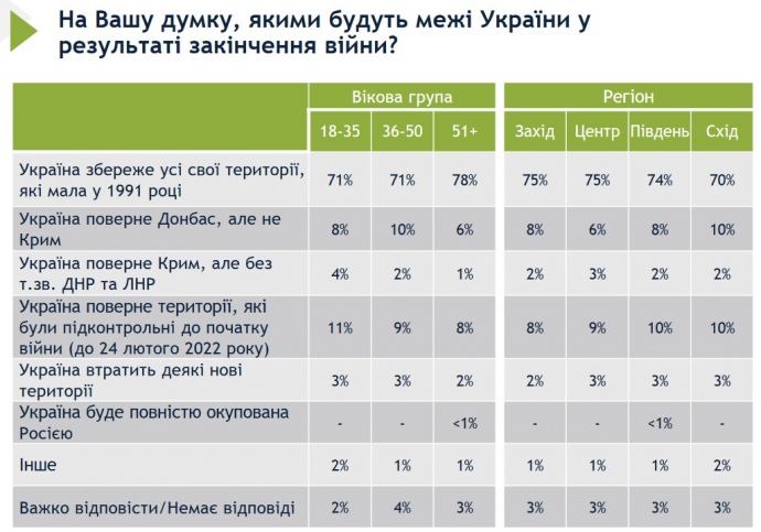 Details: Respondents were asked the question: "In your opinion, what will be the borders of Ukraine at the end of the war?"