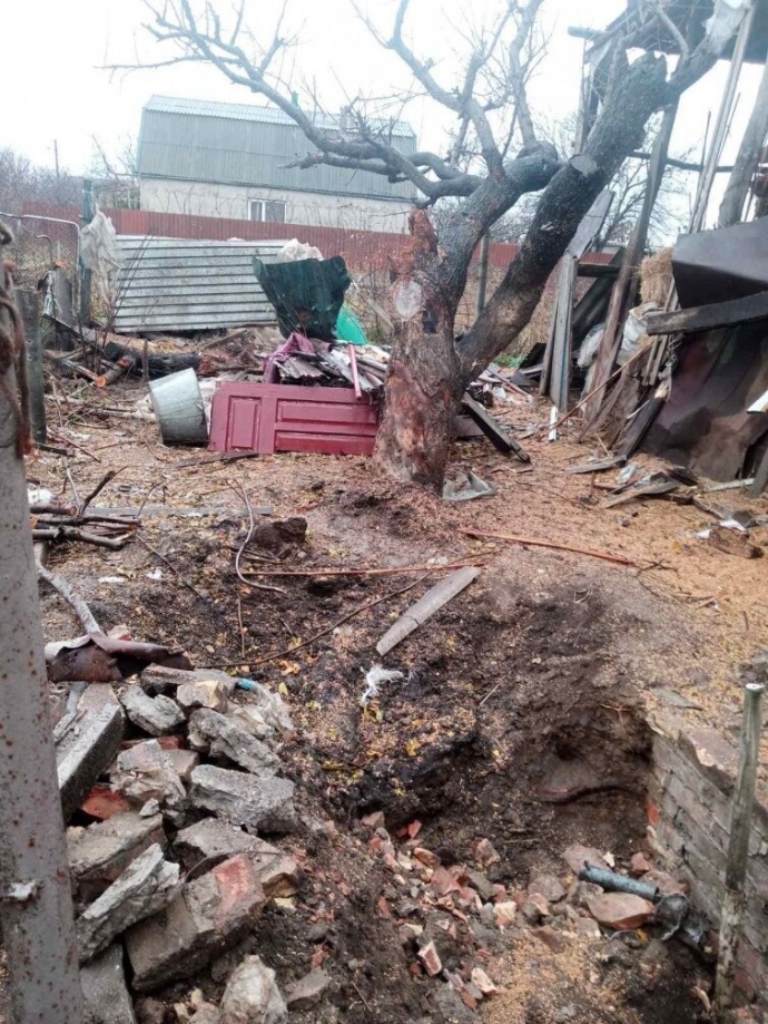 Russian shells repeatedly hit Ivan's yard, so the house was partially destroyed and has no doors or windows left.