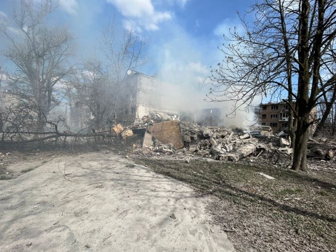 The Russians launched an airstrike on a multi-storey building in the city of Avdiivka in Donetsk Oblast on 10 April, destroying it.
