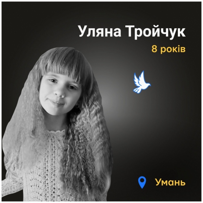 The Russian missile in Uman took the life of eight-year-old Uliana Troichuk. Her father Roman, stepmother Antonina and grandmother Valentyna were killed with her.