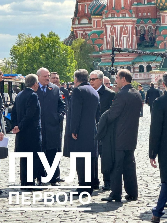 Lukashenko's press service has also shared a photo of him talking to Uzbek President Shavkat Mirziyoyev, Kazakh President Kassym-Jomart Tokayev and Tajik President Emomali Rakhmon on Red Square.