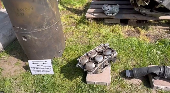 Journalist shows fragments of Russian Kinzhal missile shot down in Ukraine