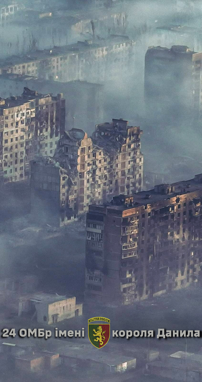 The 24th separate mechanised brigade named after King Danylo published a photo of Bakhmut destroyed as a result of Russian attacks.