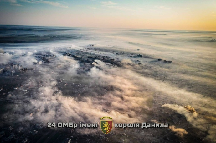 Quote: "This is what Bakhmut looks like right now. You might think it is fog. However, it is not. It is smoke from fires and smoke shells used by the enemy in a desperate attempt to break through our defences."
