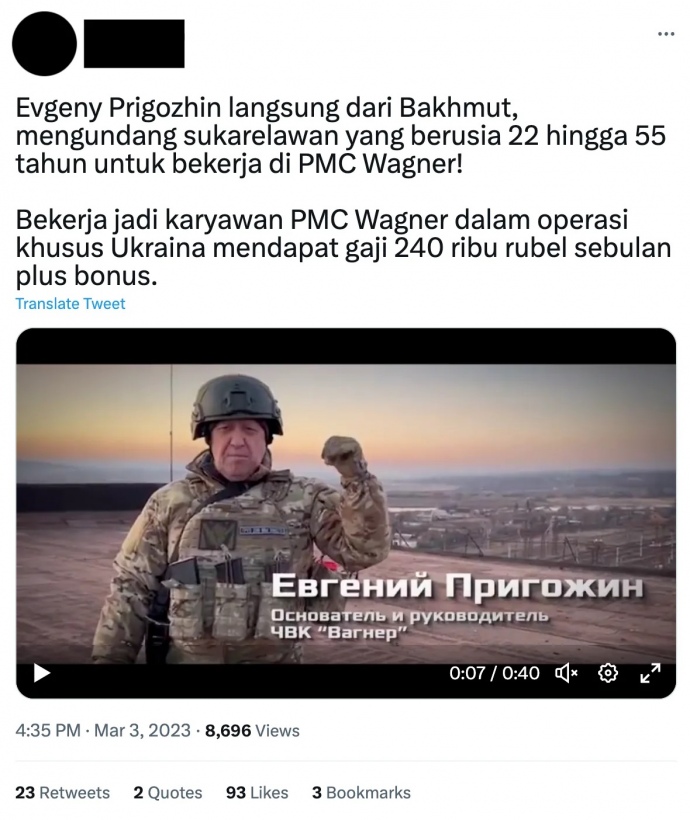 The Wagner Group, the infamous Russian private military company, has been using Twitter and Facebook to recruit medics, drone operators and even psychologists to aid in combat operations, including those in Ukraine.