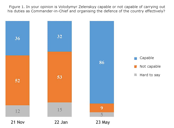 Quote: "After the large-scale invasion, Ukrainians have radically changed their views and now 86% believe that Volodymyr Zelenskyy is working effectively as commander-in-chief."