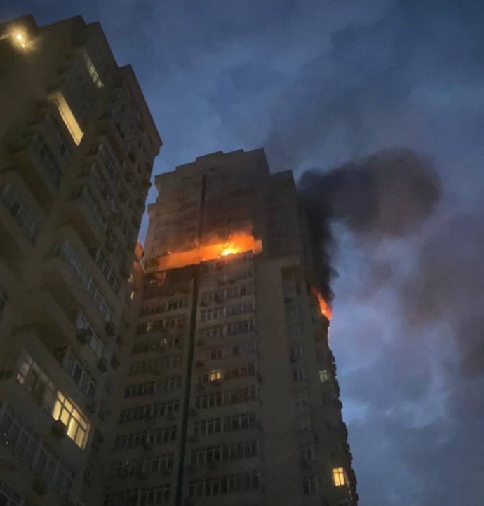 Updated at 04:05. Later, Kyiv City Military Administration confirmed that the 15th, 16th and 17th floors of a 24-storey building in the Solomianskyi district had been damaged and a fire had broken out as a result of falling debris.