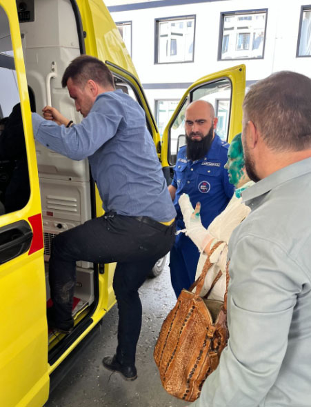 The victims were taken to a hospital in Grozny. According to Sergei Babinets, leader of Team Against Torture, who is with them, Nemov is "in a wheelchair" and Milashina "cannot even sit up".