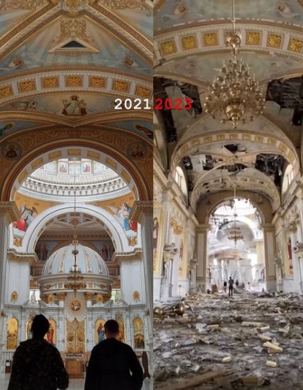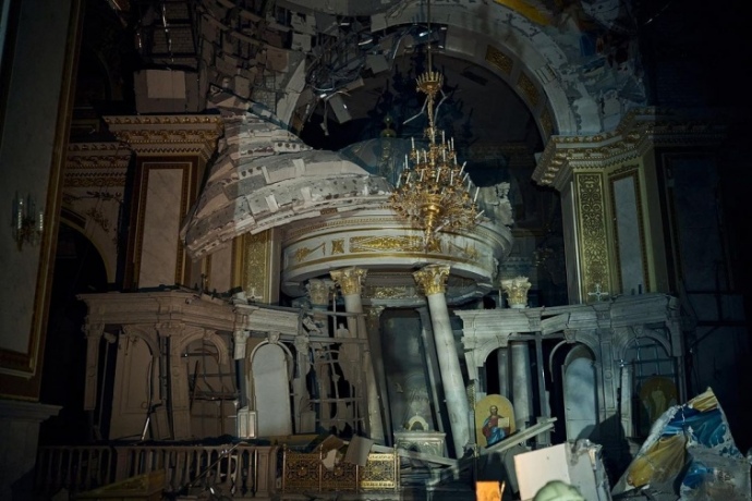 The Odesa Eparchy of the UOC has reported that the Russian missile hit the cathedral’s central altar, partially destroying the building.
