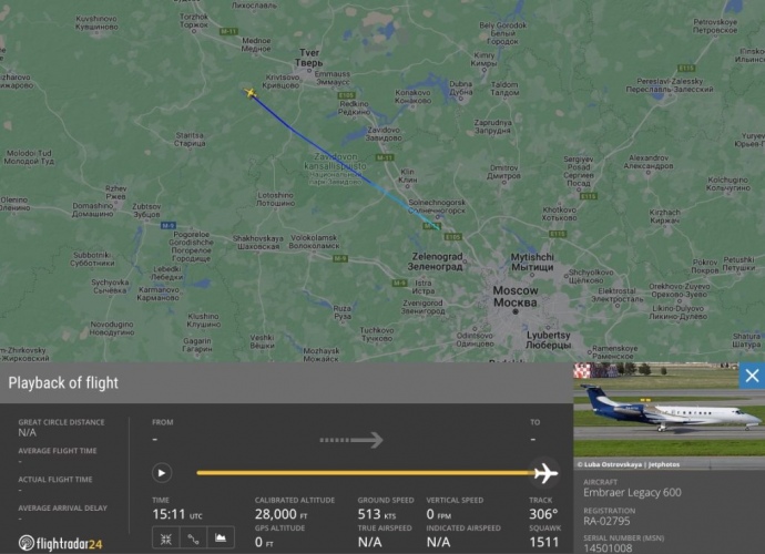 Details: Flight tracking website FlightRadar24 has reported that the Embraer Legacy 600 stopped transmitting location data at 18:11 local time, likely due to "jamming/interference in the area", but the aircraft continued to transmit other data for another nine minutes.