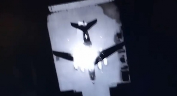 An image provided by a Defence Intelligence source shows the direct result of one of the strikes: it hit the same spot where the two aircraft were damaged.