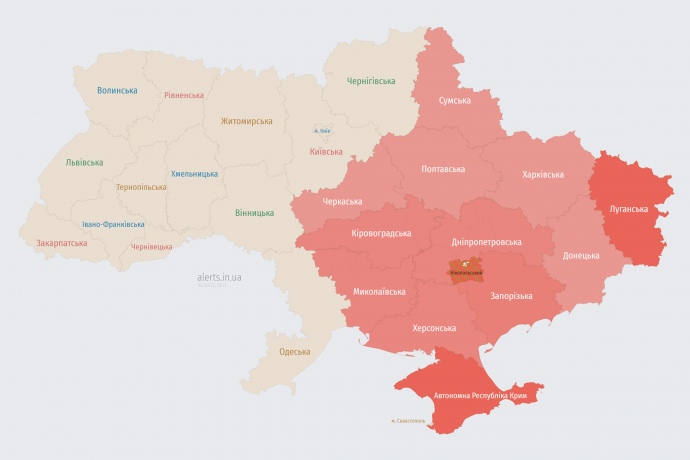 At 1:37 (Kyiv time), the threat of attack drones was issued in Vinnytsia, Cherkasy, and Odesa oblasts.