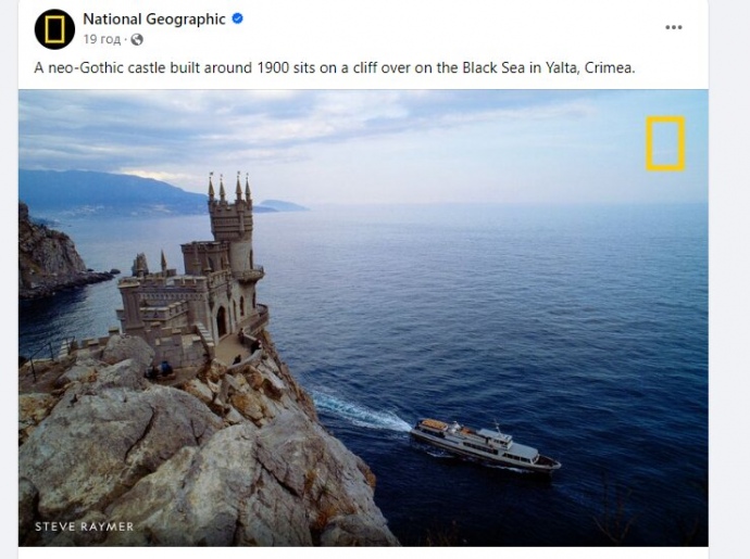 The famous American popular science TV channel National Geographic has published a photo of the Swallow's Nest Castle in Crimea, but did not specify the country where it is located.