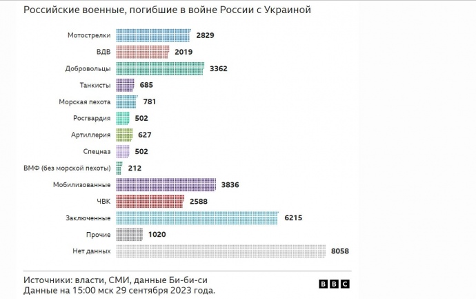 The greatest losses are among the Russian convicts recruited for the war in Ukraine. Journalists were able to establish the names of 6,215 convicts who died at the front as of 29 September 2023. Over 100 of them were citizens of foreign countries, most often Uzbekistan, Tajikistan and Kyrgyzstan.