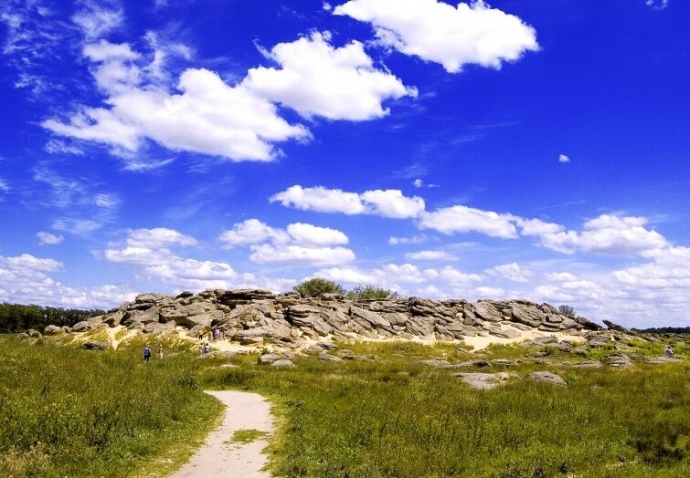 Kamiana Mohyla (Stone Tomb) is an ancient cultural landmark located near the city of Melitopol (in the settlement of Myrne), Zaporizhzhia Oblast, on the Molochna River.