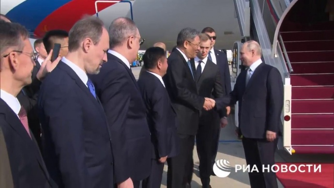 Putin was met at Beijing airport by Chinese Commerce Minister Wang Wentao.