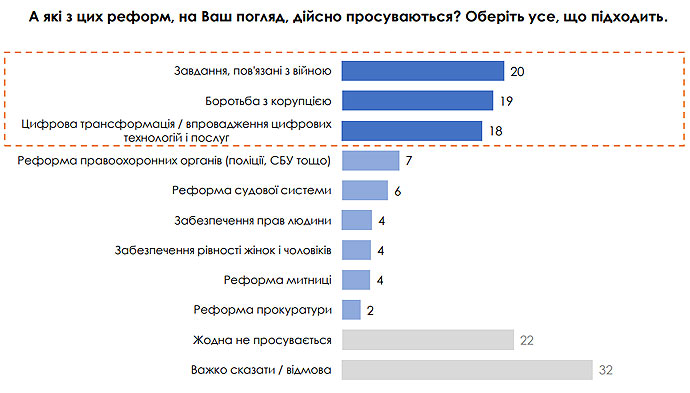 Ukrainians say that the number of information about individual reforms or tasks is also low.