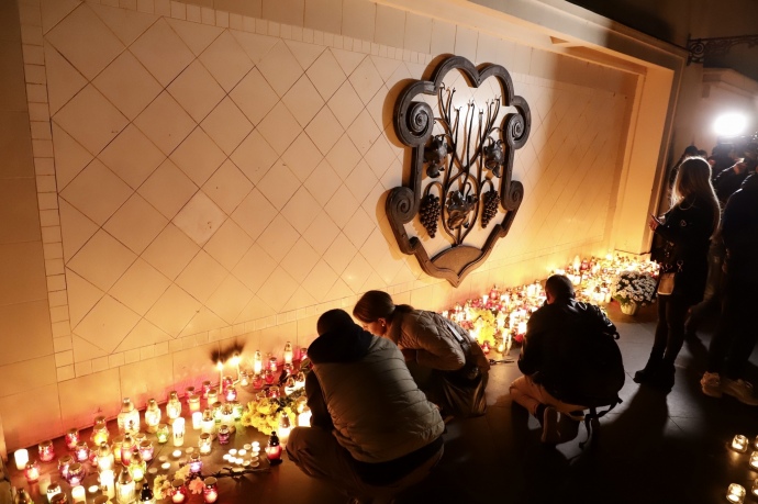 Quote Mukachevo City Council: "With lamps and flowers, people came to the memorial stele to the defenders on the Cyril and Methodius Square.