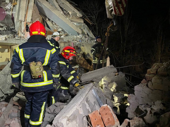 Russian invaders have fired on a residential building in the town of Selydove in Donetsk Oblast at night, resulting in the collapse of the entrance, killing two people, injuring several residents, and other people are being searched for under the rubble.