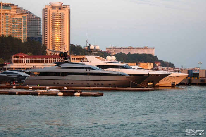 The vessel left Sochi for Crimea in the summer of 2021. The 38.5-metre Orion boat accompanied the yacht on this journey. It was developed in 2009 in Viareggio, Italy.