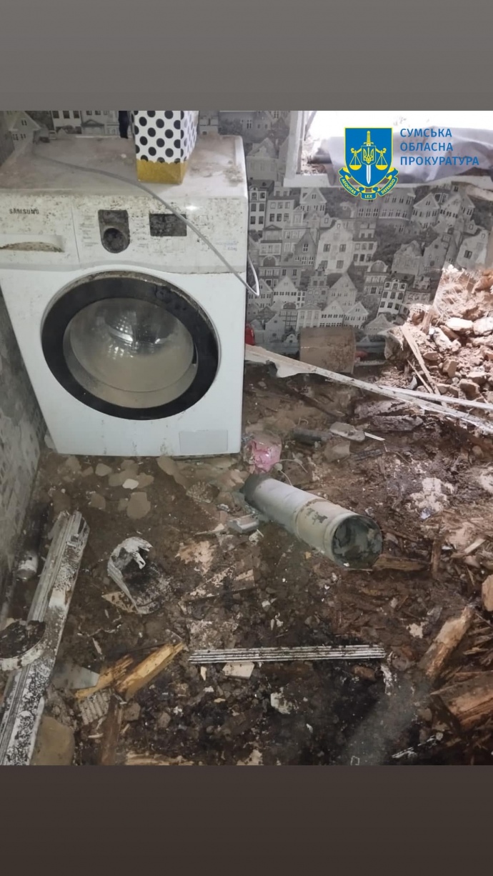 Details: The prosecutor's office reports that the Russian forces, at around 12:30, using methods of warfare prohibited by international law, struck civilian infrastructure of the settlement of Seredyna Buda.