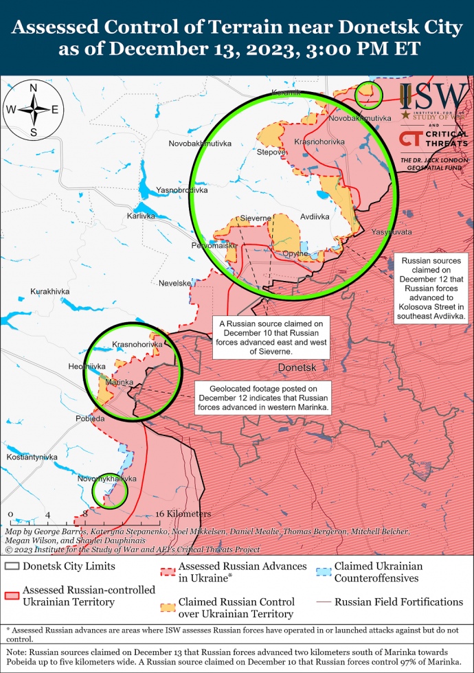 Details: Russian forces continued their offensive near Avdiivka on 13 December and made confirmed advances.