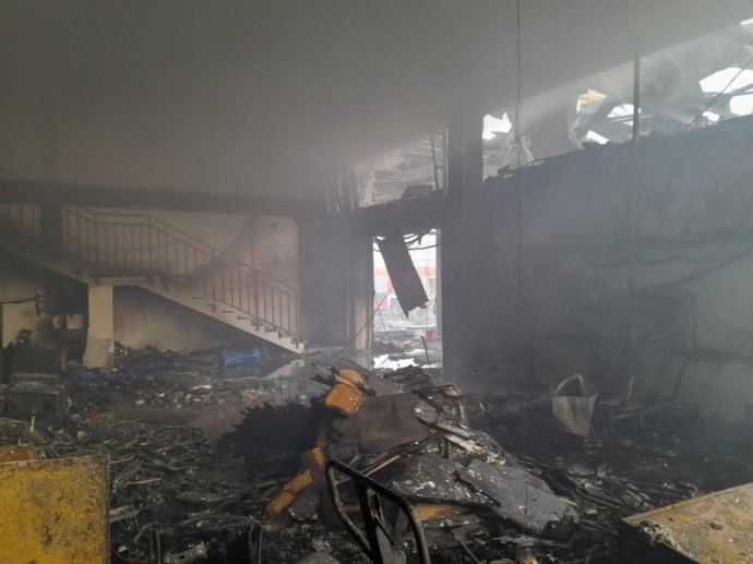 A direct hit and the resulting fire completely destroyed the stocks of humanitarian aid for the residents of Kherson Oblast that were being stored in the warehouse.