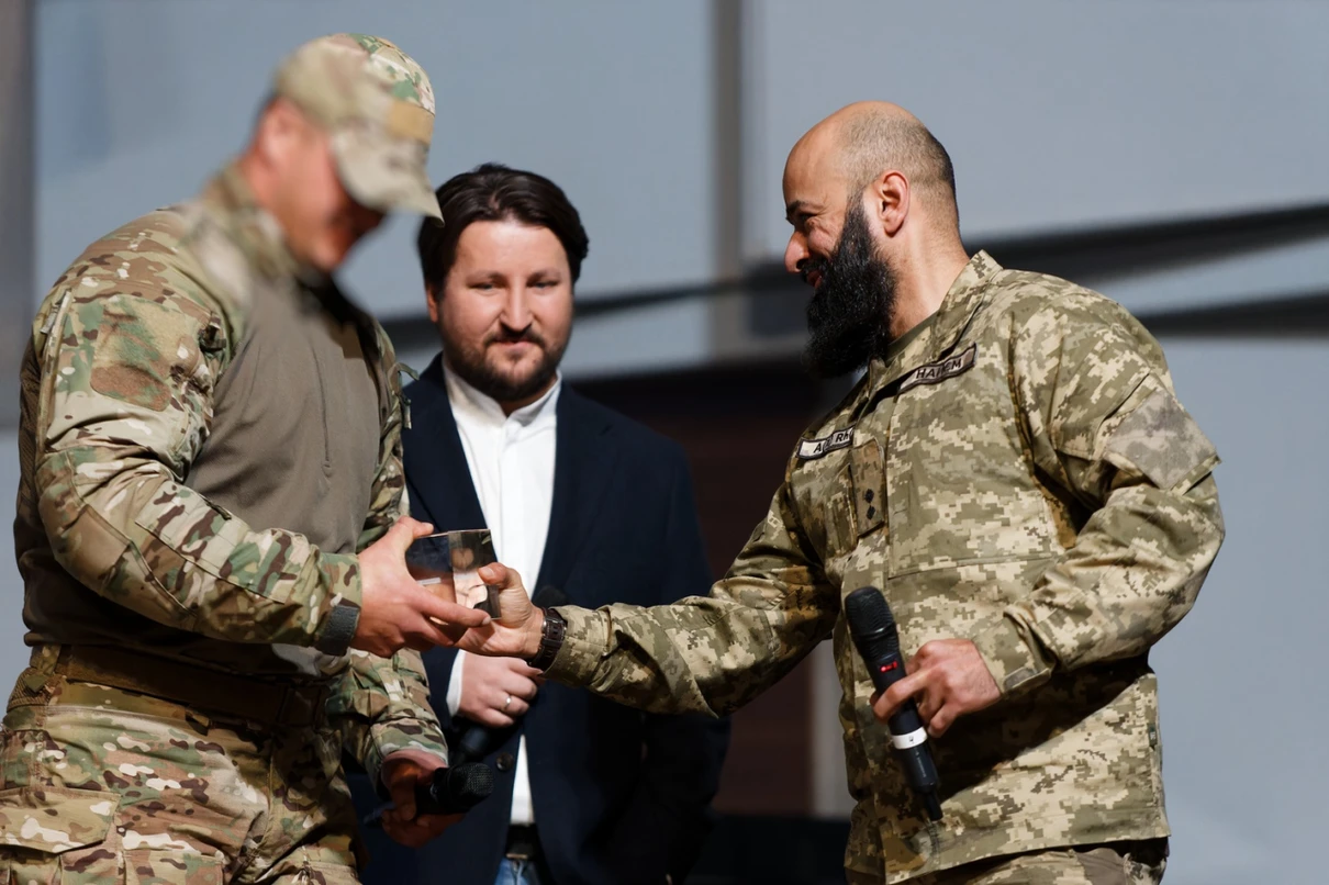 Olena Tolkachova, Head of the Azov Regiment Patronage Service, and military officer Oleksandr Matsiievskyi, whom the Russians treacherously shot in March 2023 for saying "Glory to Ukraine!", received the Civic Position of the Year award.