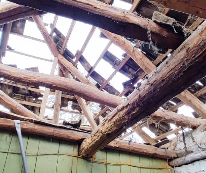 "At first, I heard a loud explosion somewhere nearby. Then, the Russians struck right at our house, destroying the roof and cutting the walls. I’ve miraculously survived," recalls Volodymyr, owner of the house.