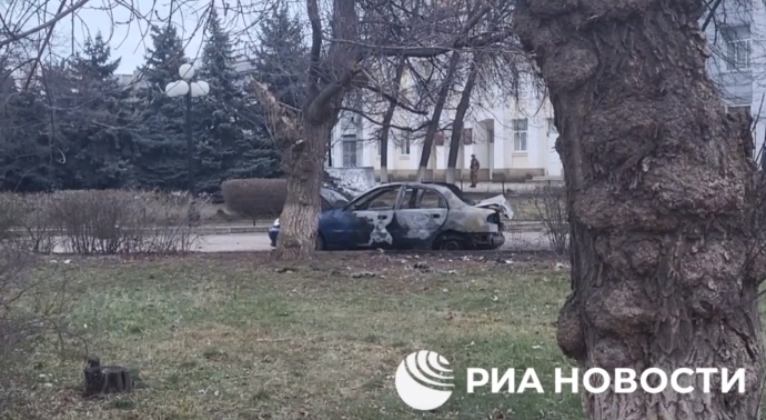 Anonymous Russian Telegram channels claimed that the car was blown up and that Oleh Popov, the so-called member of the people's council of the "LPR", was inside the car. He was reportedly injured.
