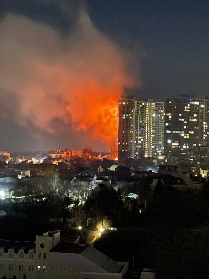 A high-rise building caught fire due to falling wreckage on the night of 31 December-1 January. As a result, one person has been killed.